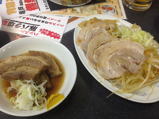 麺は中太ストレート。コシはある方。味はと言うと、なんともうすぼけたどっちつかずな感じ。豚骨が入っていると思われるのだが、醤油が申し訳なさそうにあとから自己主張する感じの、うーん、もうちょっとやりようがあるような……という気がしつつも、店員の気前の良さと豊富なメニューでその辺が気にならない感じかな(汗)。看板通りの店と言えるんじゃなかろうか。