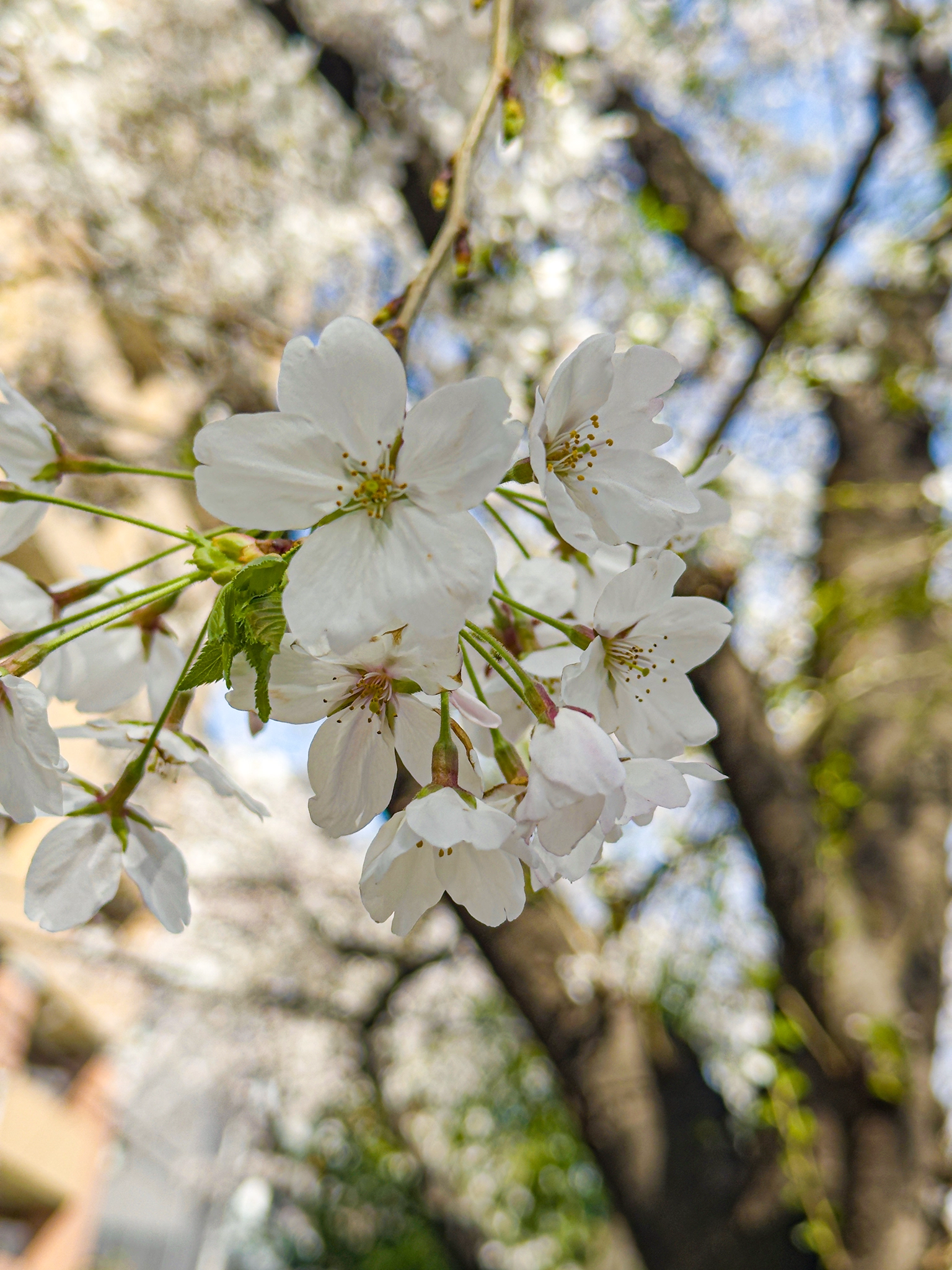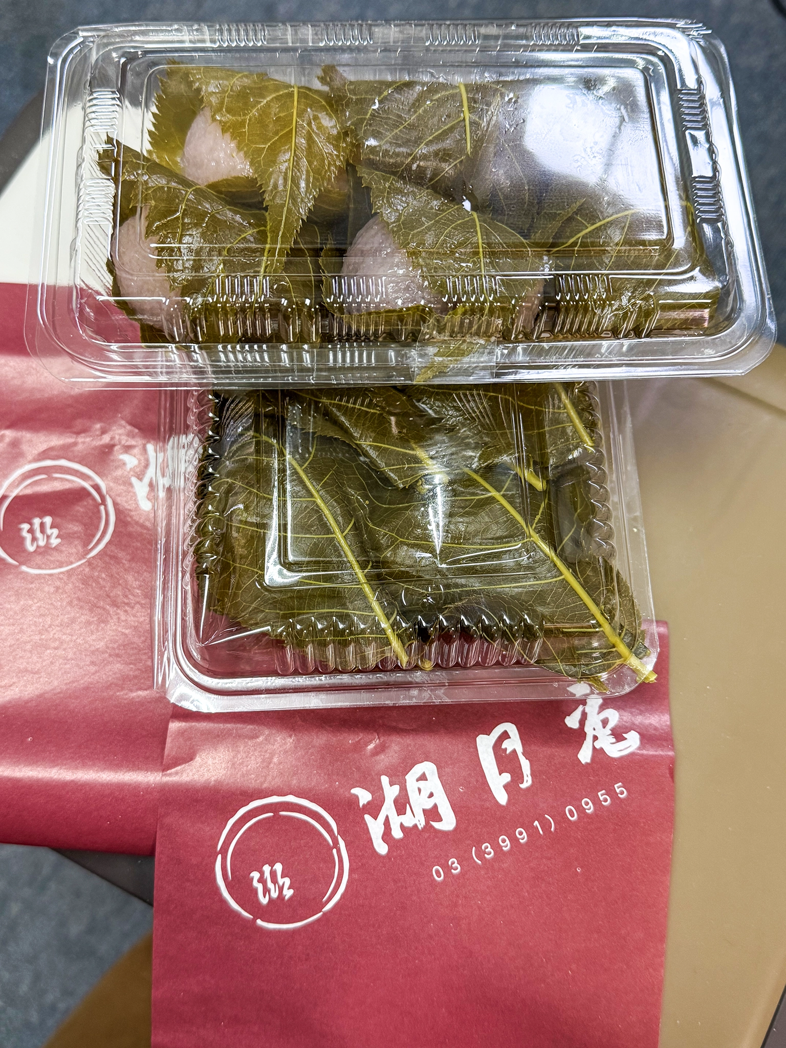 さて、今日は外出したのだが桜が満開だった。写真は桜台は千川通り沿いの桜と同じく桜台の和菓子屋『湖月庵』の桜餅と道明寺。桜餅(白い方)は長命寺とは呼ばないんだなぁ。ピンク色の方が関西式の桜餅だ。しかし桜の写真、撮るの難しいなぁ……陽の光がけっこう強くて花の明るさに合わせると周囲が白く飛ぶのよね……もっと撮る方向を考えるべきだった。