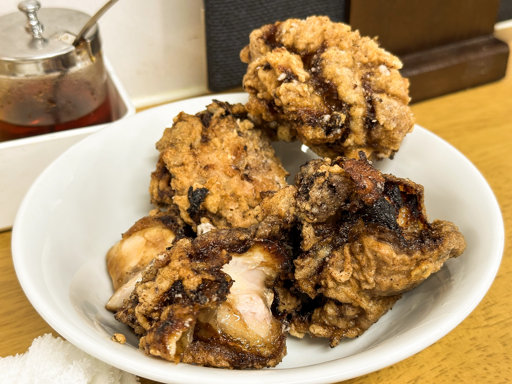 というわけでネギラーメンと黒からあげを頼んだんだが、うーん、ネギラーメンはネギが完全に佐野ラーメンのあっさり醤油感をスポイルしてしまっているようにボクは感じた。ネギってさ、濃い味をすっきりさせるじゃない? 元々すっきりしているラーメンなのでネギ臭さが逆にクドさになってしまっている。なのでなんだろう、もっと濃い味のラーメンを欲してしまった。